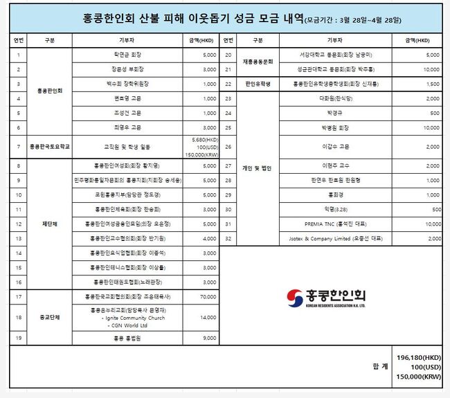■ 홍콩한인회, 한국 산불화재 성금 모금