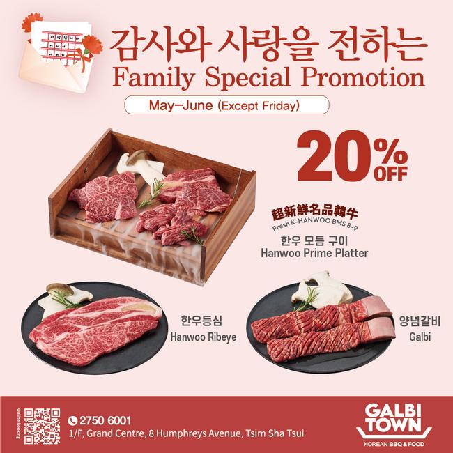 ■ 갈비타운 : 감사와 사랑을 전하는 갈비타운 프로모션 한우 모듬 구이 / 한우 등심 / 양념갈비 20% 할인! 기간 : 5~6월 (금요일 제외) 예약 : 2750-6001 1/F, Grand Centre, 8 Humphreys Avenue, TST