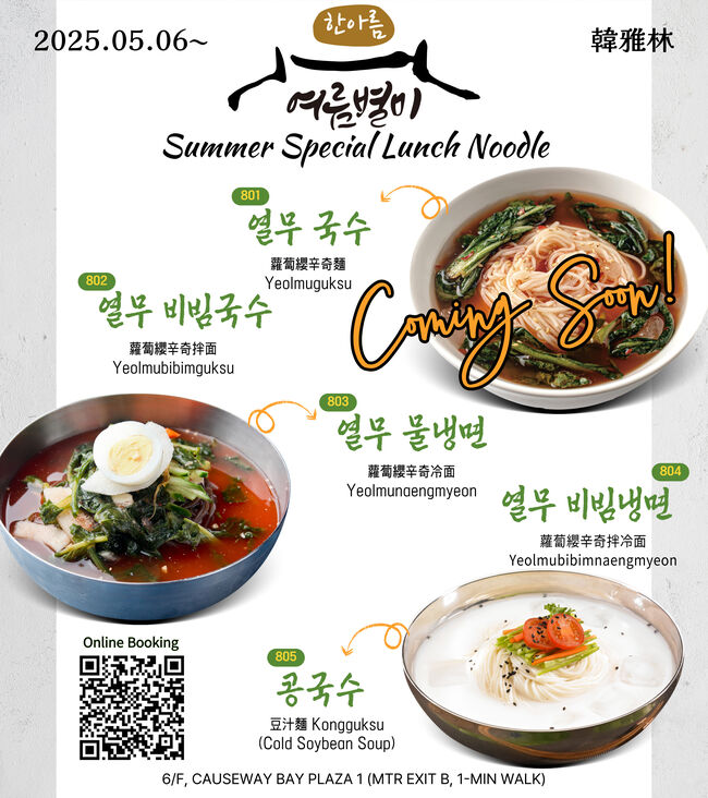 ■ 한아름(코즈웨이베이) 고급 한식당에서 제공하는 품질최고 & 가성비 최고한식, 여름특별식 : 열무국수, 열무비빔국수, 열무 물냉면 문의 예약 2866 6927