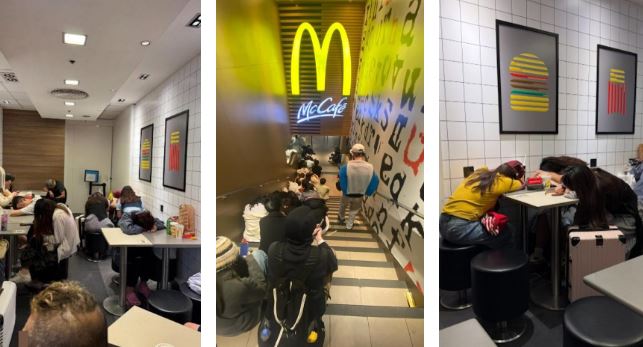 로컬매체에 따르면 이들은 맥도날드를 숙박 장소로 이용했다는 의혹을 받고 있으며이로 인해 손님들은 빈자리를 찾지 못하고 있다고 보도했다
