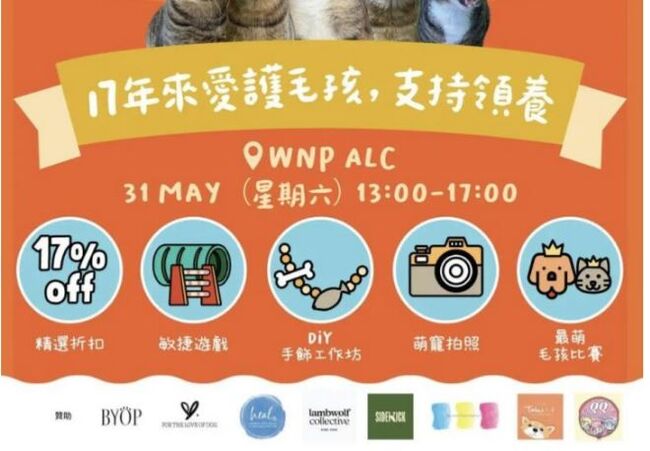 오는 5월 31일 Whiskers N Paws 압레이차우(Ap Lei Chau)에서 반려동물 입양을 장려하는 17주년 기념 행사를 개최한다.