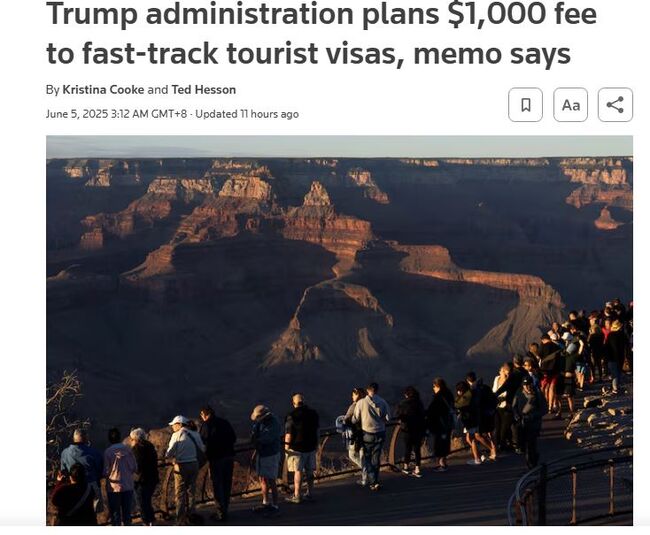 ■ 트럼프 행정부, 관광비자 USD1,000 검토