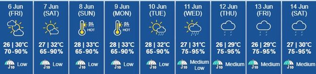 홍콩 기상청에 따르면 열대성 저기압이 613일경 홍콩 근처로 이동할 가능성이 있다.