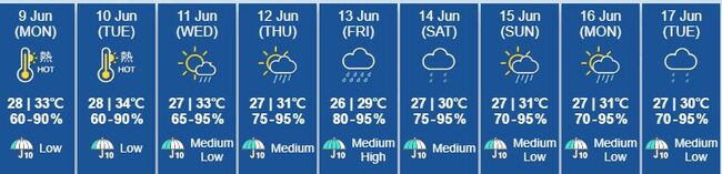 천문대의 9일 간의 일기 예보에 따르면, 이번 주 초반에는 더위가 지속될 것으로 예상된다. 오늘 날씨는 최고 기온이 33도, 내일 화요일에는 34도까지 오르는 등 여전히 더울 것으로 예상된다.