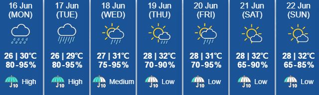 상공에 고기압이 점차 강화되면서 광둥성의 날씨는 호전되겠지만, 이번 주 중반과 후반에 소나기가 내리겠으며 덥겠다.