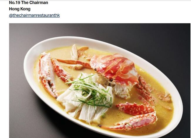 세계 최고의 파인 다이닝 레스토랑을 선정하는 자리로, 홍콩의 미식 문화가 상당한 주목을 받았다. 홍콩의 레스토랑 두 곳, Wing과 The Chairman은 순위가 상승하며 홍콩의 세계 미식 무대에서의 입지를 확고히 했다.