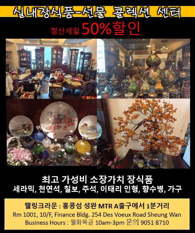 ■ 웰링크라운 : 실내 장식품 - 선물 콜렉션 센터 재오픈 기념 20% 세일 / 셩완 MTR 1분거리 문의 :  9051 8710
