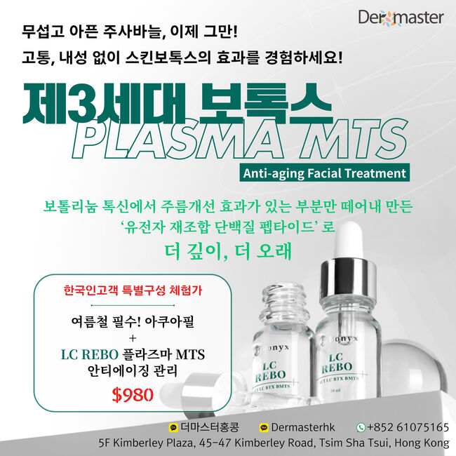 ■더마스터홍콩 : 더마스터 클리닉: ‘제3세대 보톡스' Bonyx런칭 기념 한국인 한정 체험가! $980 니들프리, 모공/주름 케어 *아쿠아필+보닉스LC Rebo플라즈마 MTS 관리