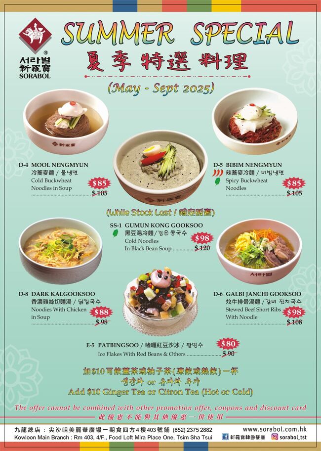 ■ 한아름(코즈웨이베이) 고급 한식당에서 제공하는 품질최고 & 가성비 최고한식, 여름특별식 : 열무국수, 열무비빔국수, 열무 물냉면 문의 예약 2866 6927