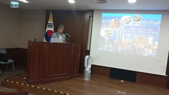 초청강사 박형희 대표는 ‘불확실성 시대의 홍콩 한식기업의 지속성장 전략’이라는 주제로 홍콩 외식업계 전망에 대해 설명했다.