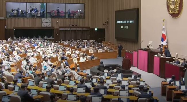 국힘당 의원들은 이 제안을 거부하고 상복처럼 보이는 검은 정장을 입고 등장하며 여당의 일방적인 법안 통과에 항의했다.