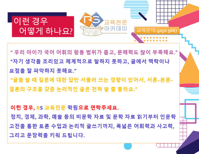 ■ 알에스한국어/논술/ 입시컨설팅: 한국어와논술, 그리고한국대학입시를고민할때가장먼저 생각나는곳, 교육문의: ☎ 9250 5687
