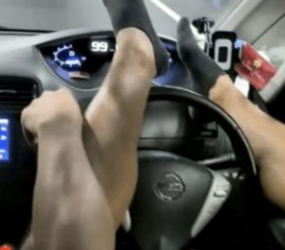 운전자가 두 발을 핸들에 올려놓고 운전하는 모습이 담겨 우려스러운 모습이다. 약 12초 분량의 이 영상에는 운전자가 오른손만으로 차량을 운전하는 모습이 담겨 있다.