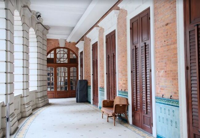박물관의 스테인드글라스 창문베란다 유약 타일 벽그리고 기타 시대적 세부 묘사는 훌륭한 상태를 유지하고 있다.