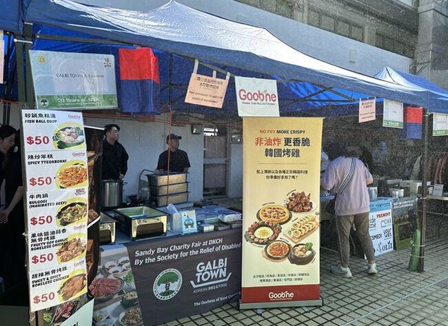 홍콩한인요식업협회(회장 이종석)와 한아름, 갈비타운, 굽네치킨 등 한인 외식 업체들의 후원으로 치킨, 떡볶이, 어묵, 잡채, 만두, 김치볶음밥, 김밥, 김치전, 김치, 겉절이 등의 한식을 판매하였다.