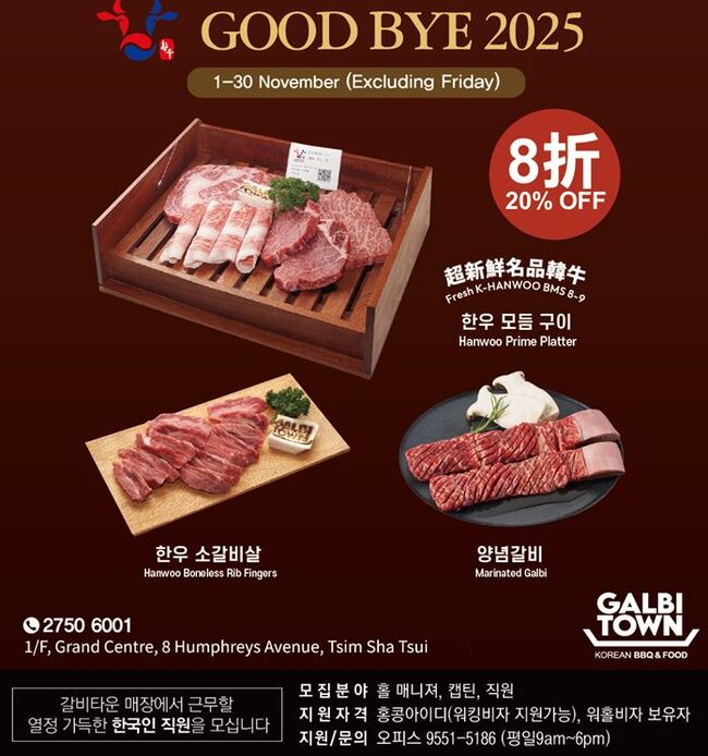 ■ 오빠&포차: (윈롱YOHO 쇼핑몰근처): BBQ 20% 할인(월-목) 12월 18일까지 한국직송한우(A++(9)최상급, 예약 6162 0798 / 카톡 andyhk82andyhk82 )