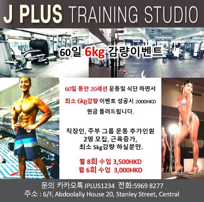 ■ 제이플러스 Anbc 피트니스 대회 3위입상 김지현 코치와 함께하는 10회 레슨 10회 세션~6000HKD저녁 직장인반 그룹 레슨 추가모집 2달동안 6KG 감량 목표 8회~ 3500HKD