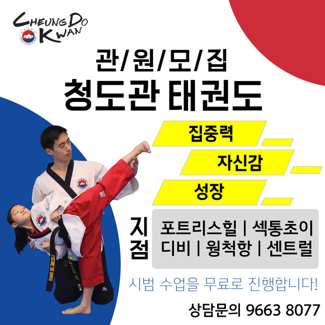 ■ 청도관 태권도 : 관원모집 (포트리스힐, 섹통초이, DB, 웡척항, 센트럴 문의 9663 8077