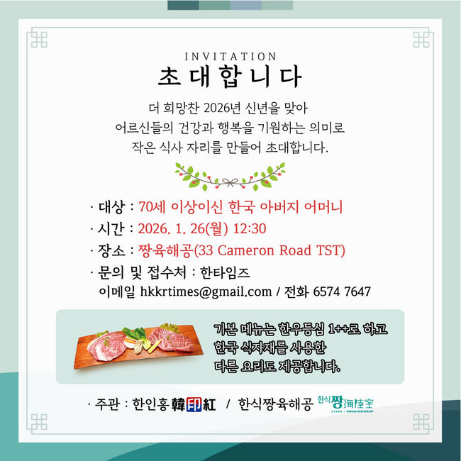 70세 이상 한국인 어머니 아버지~ 점심에 초대드립니다.