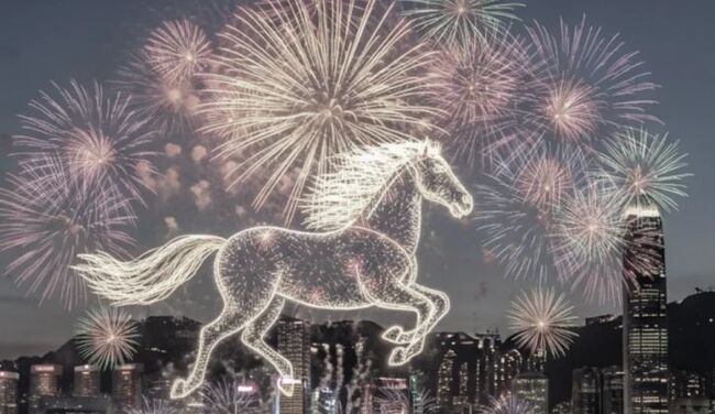 홍콩은 자키 클럽이 후원하는 화려한 불꽃놀이로 말의 해를 맞이한다. 2월 18일 저녁 8시에 시작되는 이 불꽃놀이는 빅토리아 항구에서 펼쳐지며, 총 31,888발의 불꽃이 8개의 장면으로 구성되어 말과 길상(吉友)을 상징하는 모티브로 연출된다.
