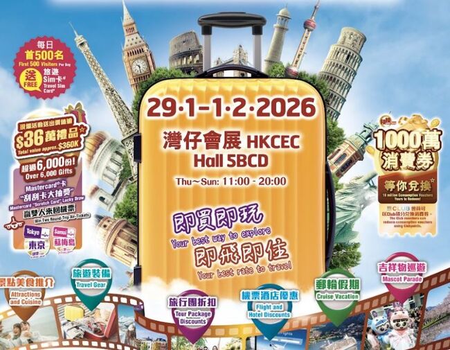 홍콩 휴가 및 여행 박람회가 2026년 1월 29일부터 2월 1일까지 홍콩 컨벤션 전시센터 5BCD홀에서 개최된다.