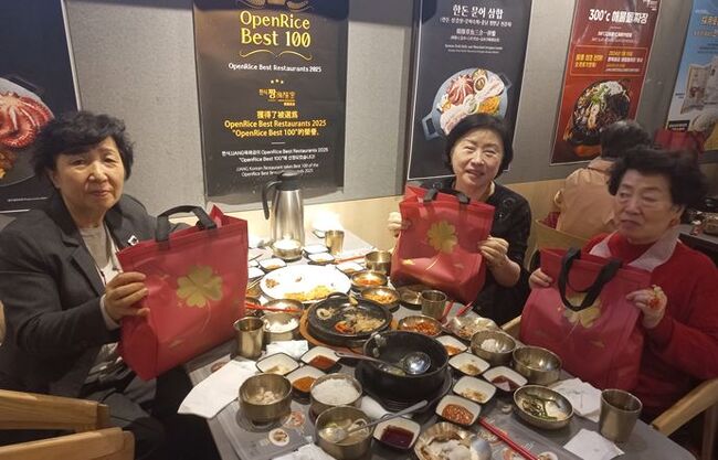 한인홍&한식당 짱 측은 식사 제공에 그치지 않고 어르신들에게 한국산 신고배와 한국 딸기 등 선물을 증정했다.