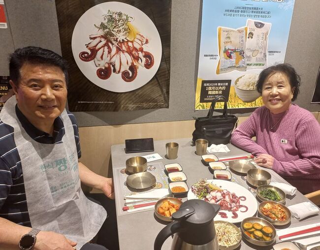 오늘 잔치음식에는 한국산 최고 1++ 9등급 한우와 낙지 편채그리고 두부해물탕 등이 제공되었다.