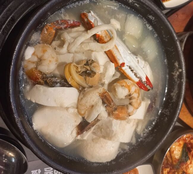 두부 해물탕은 신선한 꽃게신선한 홍합낙지, 조개, 새우 등을 넣어 국물이 매우 시원하고 얼큰하며해산물의 쫄깃한 식감이 일품이었다두부는 포슬포슬하면서 단단한 식감으로 국물은 진한 감칠맛과 깔끔한 맛이었다신선한 해산물을 사용하여 비린내가 없고 국물이 아주 시원하며, 통통한 해물의 식감이 일품이었다.