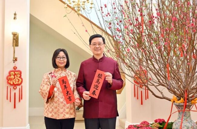저와 제 아내는 홍콩의 모든 분야가 앞장서고, 모든 사업이 빠르게 성공하며, 말의 해가 모든 이에게 행운과 기쁨을 가져다주기를 기원합니다."