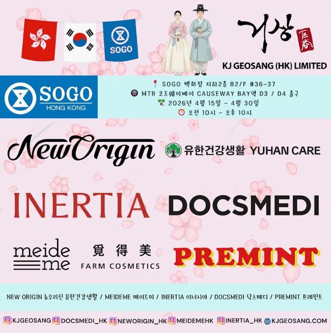 ■ Geosang 巨商 거상 (HK) Ltd. WWW.KJGEOSANG.COM 98년 역사를 자랑하는 대한민국 제약회사 1위 기업인 유한양행 산하 유한건강생활, 국내 청정 지역 변산반도 자사 농장에서 직접 키운 비건화장품 메이드미 Meideme 문의전화 67686550