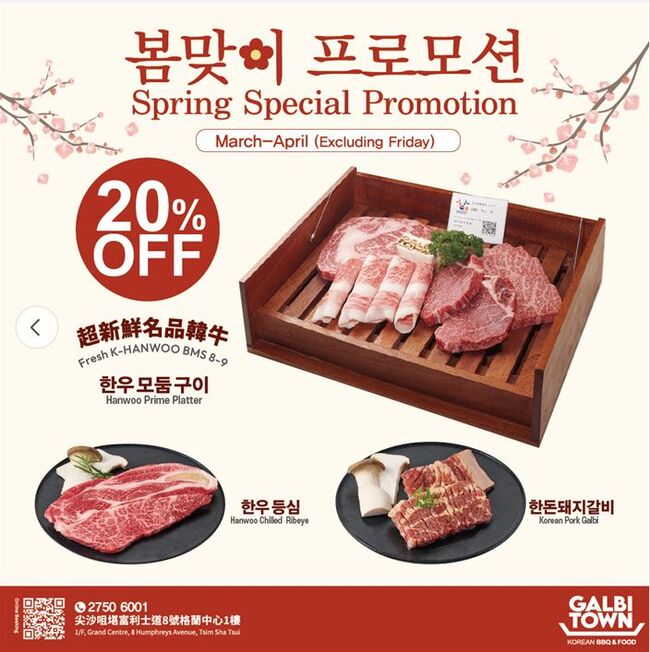 한우 모둠 구이 / 한우 등심 / 한돈 돼지갈비 20% 할인 (금요일 제외)  예약:2750 6001